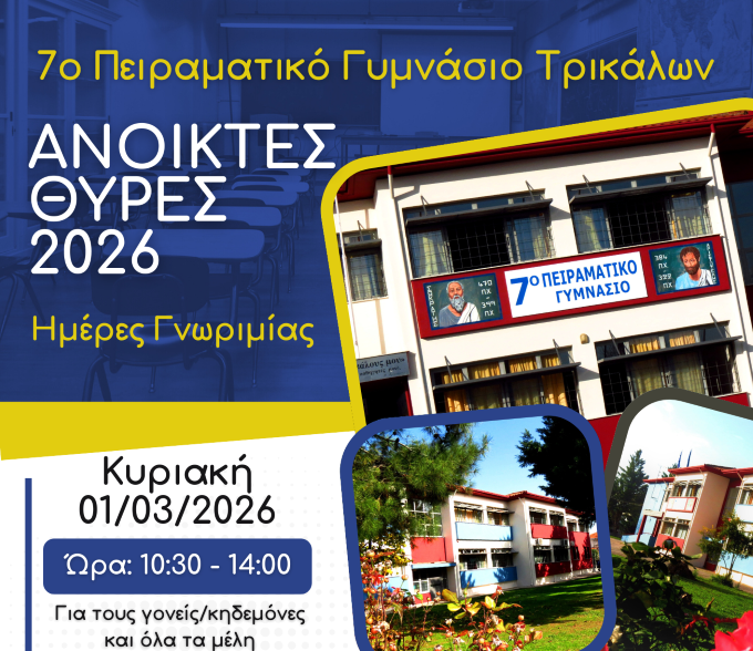 Ανοικτές Θύρες 2026 στο 7ο Πειραματικό Γυμνάσιο Τρικάλων
