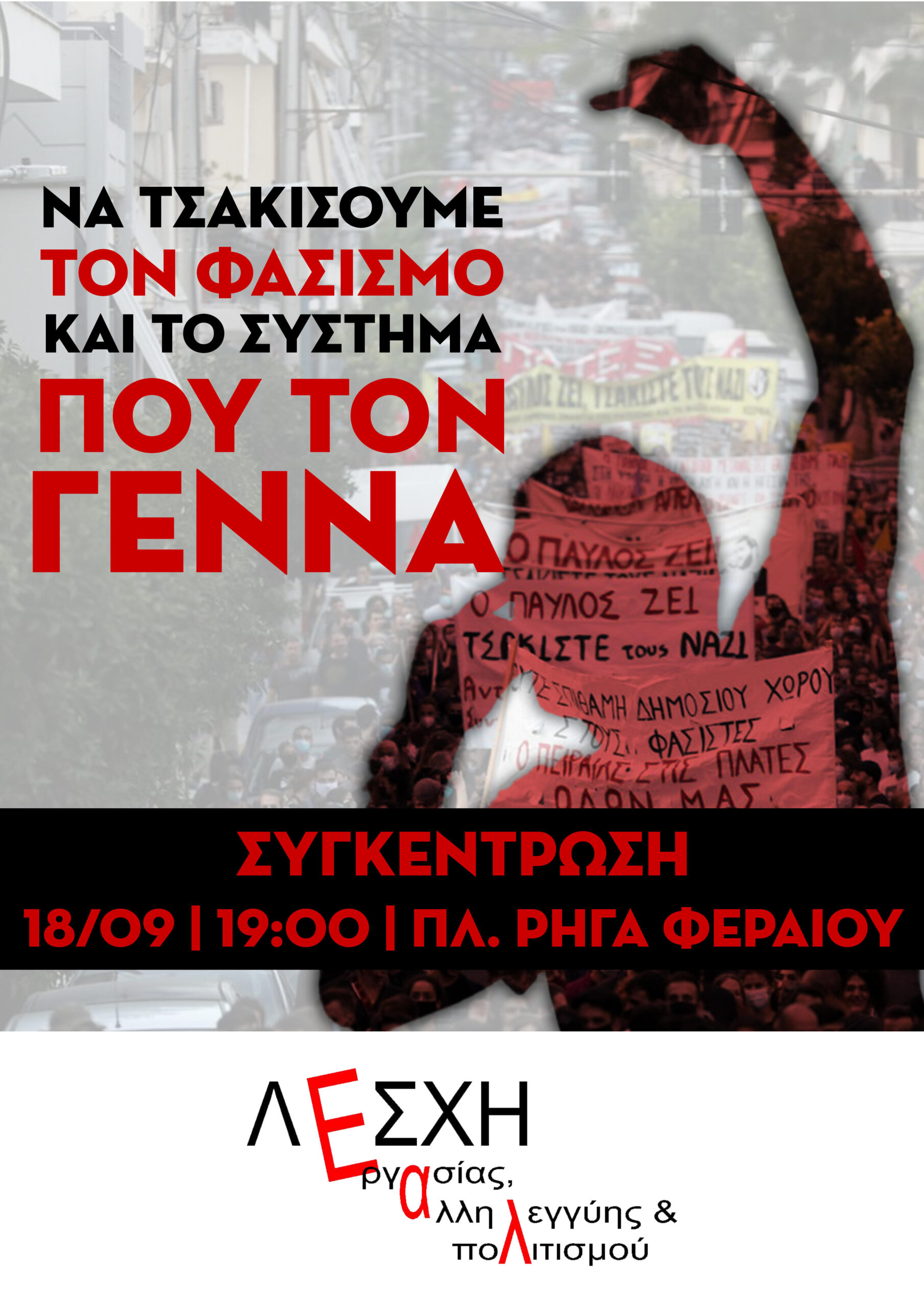 Στις 18 Σεπτεμβρίου συμπληρώνονται 9 χρόνια από τη δολοφονία του Παύλου Φύσσα από τον Γ. Ρουπακιά, μέλος των ταγμάτων εφόδου της Χρυσής Αυγής. Είχε προηγηθεί στις 17 Ιανουαρίου 2013 η δολοφονία του μετανάστη εργάτη Σαχζάτ Λουκμάν από τα ίδια φασιστικά τάγματα της Χ.Α.