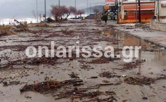 Μαζί με αυτά, διάφορα φερτά υλικά, ακόμη και μία βάρκα (!) όπως θα δείτε στην παρακάτω φωτογραφία του onlarissa.gr, βρέθηκαν στο οδόστρωμα.