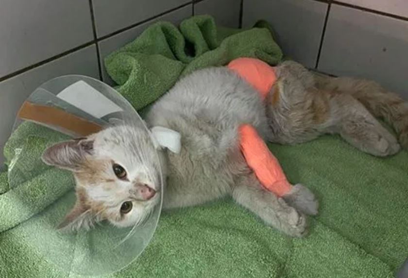 Όπως αναφέρει σε ανάρτησή της η Φιλοζωική Ομάδα, η γάτα μεταφέρθηκε στον κτηνίατρο Φιλήμονα Διαμαντή και έγινε χειρουργείο για να αφαιρεθεί το σύρμα. Το σύρμα είχε στριφτεί με πένσα για να μην μπορεί να βοηθηθεί το ζώο. Στον πρωκτό της γάτας βρέθηκε και ένα μαύρο μπαλόνι.