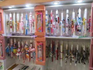 Μεγάλη ποικιλία σε πασχαλινές λαμπάδες για κάθε γούστο και κάθε βαλάντιο διατίθενται στο κηροπωλείο του Πέτρου Γιαννάκα.