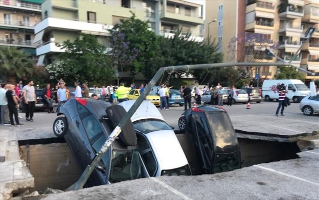 Μέσα στη μεγάλη τρύπα που άνοιξε στην άσφαλτο έπεσαν τρία σταθμευμένα αυτοκίνητα τα οποία έχουν υποστεί ζημιές. Σύμφωνα με τις μέχρι στιγμής πληροφορίες, κάτω από το σημείο που σημειώθηκε η καθίζηση περνάει ο Ιλισσός ποταμός.