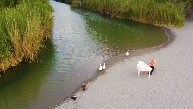 Όταν οι πρώτες νότες άρχισαν να ηχούν, εμφανίστηκαν από το πουθενά πάπιες και χήνες, σαν να ήρθαν καλεσμένες από την ίδια τη φύση, πλησίασαν το πιάνο και στάθηκαν εκεί, ακούγοντας σιωπηλά τη μουσική.