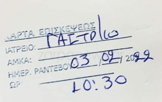 Μοιάζει απίστευτη αλλά αυτή η ιστορία είναι πέρα για πέρα αληθινή… Στην Ελλάδα του 2020 μία ηλικιωμένη γυναίκα καταγγέλλει ότι στο νοσοκομείο Χανίων της έκλεισαν ραντεβού για γαστροσκόπηση και κολονοσκόπηση ραντεβού το 2022. Σύμφωνα με το zarpanews, το ραντεβού κλείστηκε τον Φεβρουάριο του 2022.