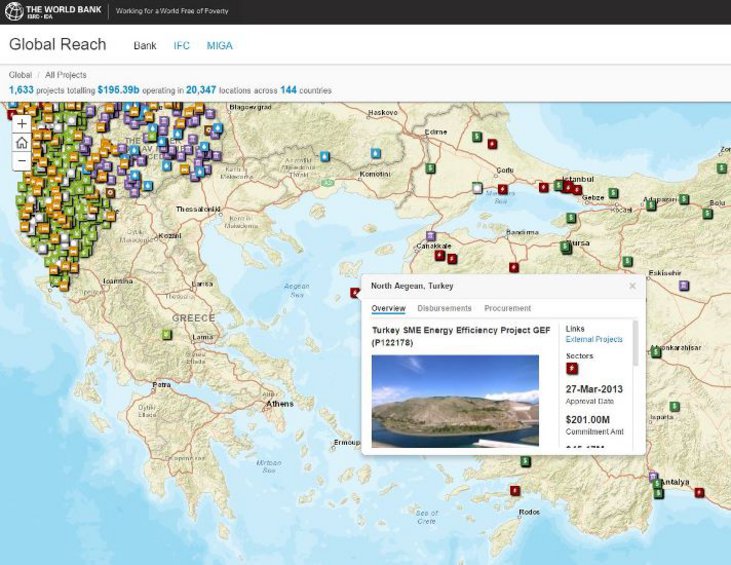Ως τουρκική επικράτεια εμφανίζει το Βόρειο Αιγαίο ο χάρτης στην επίσημη ιστοσελίδα της Παγκόσμιας Τράπεζας, στον οποίο απεικονίζονται οι χρηματοδοτούμενες από την Τράπεζα δραστηριότητες.