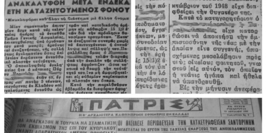 Σύμφωνα με τα δημοσιεύματα της εφ. «Πατρίς», της εποχής, ο 48χρονος Π.Π., κρυβόταν επί 11χρόνια πίσω από ένα άλλο όνομα και μια διαφορετική ταυτότητα. Γιατί το έκανε αυτό; Γιατί το 1945, είχε μεταβεί στην πόλη της Πάτρας, και είχε δολοφονήσει με φαλτσέτα έναν άνδρα.