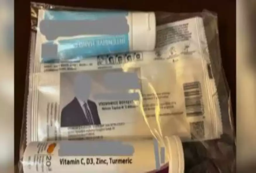 Στο κιτ υπήρχαν ένα κουτί βιταμίνες C και D3, μία κρέμα χεριών και δύο μάσκες FFP2. Σύμφωνα με το ρεπορτάζ στην ΕΡΤ, η αξία τους ανέρχεται στα 6,5 ευρώ και με τη συσκευασία θα μπορούσε να φτάσει τουλάχιστον στα 7…