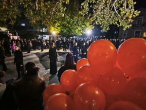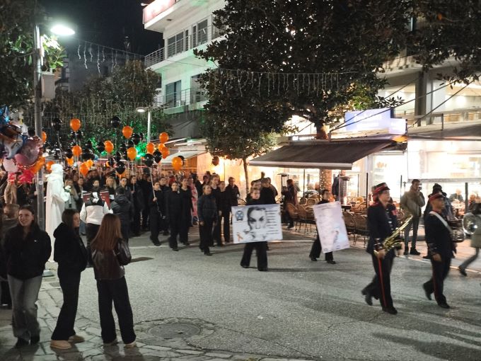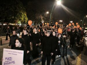 Στο τέλος της εκδήλωσης, τα μαύρα και πορτοκαλί μπαλόνια αφέθηκαν στον τρικαλινό