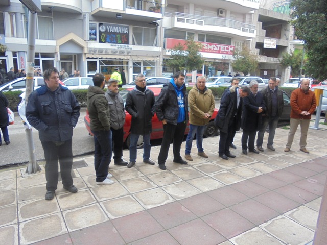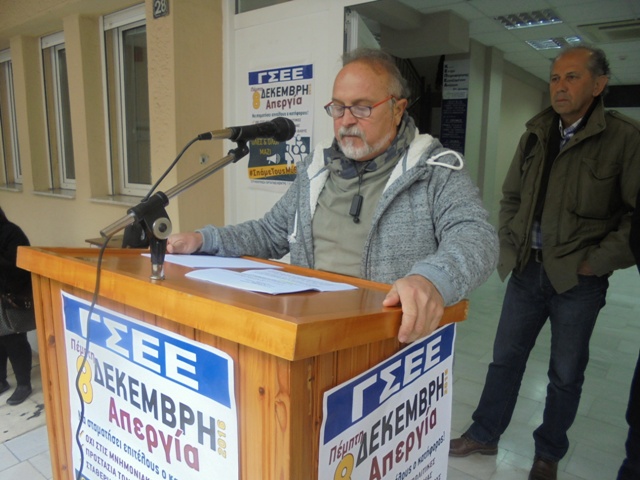 Οι εργαζόμενοι, οι άνεργοι και οι συνταξιούχοι του Νομού Τρικάλων, πραγματοποιήσαμε σήμερα 8 – 12 – 2016 συγκέντρωση στο Εργατικό Κέντρο, ύστερα από απόφαση της Γ.Σ.Ε.Ε. για κήρυξη 24ωρης ΓΕΝΙΚΗΣ ΑΠΕΡΓΙΑΣ ενάντια στις παράλογες απαιτήσεις των δανειστών και στις επώδυνες αποφάσεις της Κυβέρνησης, που εθελοτυφλώντας στις ολέθριες συνέπειες σε βάρος της μισθωτής εργασίας, στοχεύουν πια ευθέως στην καρδιά της εργατικής προστασίας.
