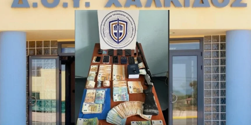 Συνολικά κατασχέθηκαν -88.795- ευρώ, -10- κινητά, σημειώσεις και όπλο
