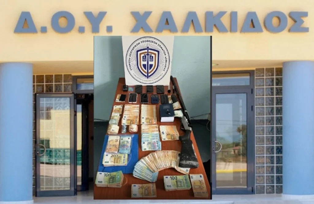 Συνολικά κατασχέθηκαν -88.795- ευρώ, -10- κινητά, σημειώσεις και όπλο