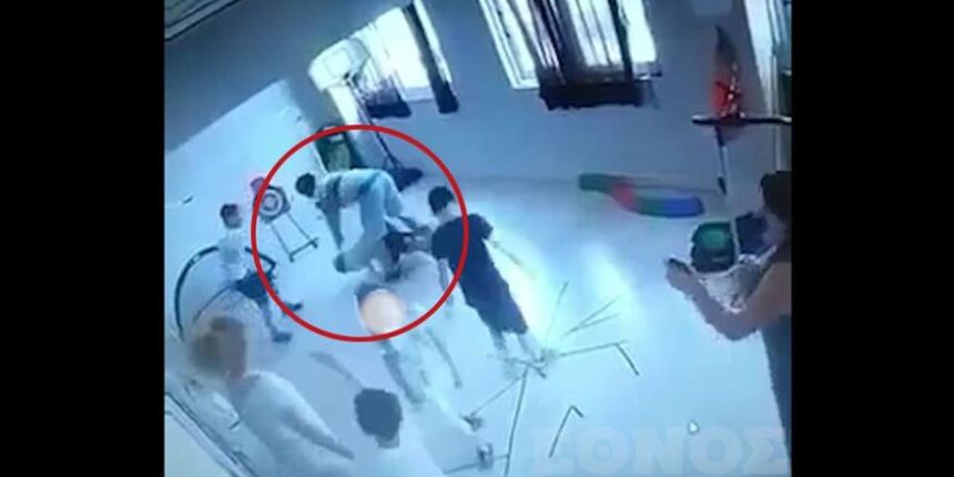 Όπως φαίνεται στο βίντεο, ο άνδρας κλωτσά το παιδί στο πρόσωπο, στη συνέχεια εκείνο σωριάζεται κάτω και συνεχίζει να το σέρνει, την ώρα που τα υπόλοιπα παιδιά βρίσκονται στον ίδιο χώρο. Οι δύο άλλες εκπαιδευτικοί παραμένουν στο σημείο χωρίς να προσπαθούν να τον σταματήσουν με τη μία από τις δύο μετά από κάποια δευτερόλεπτα να πηγαίνει προς το μέρος του.