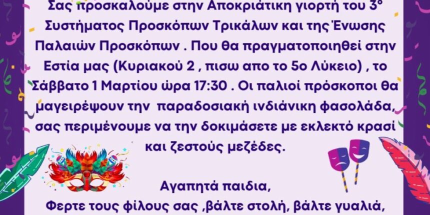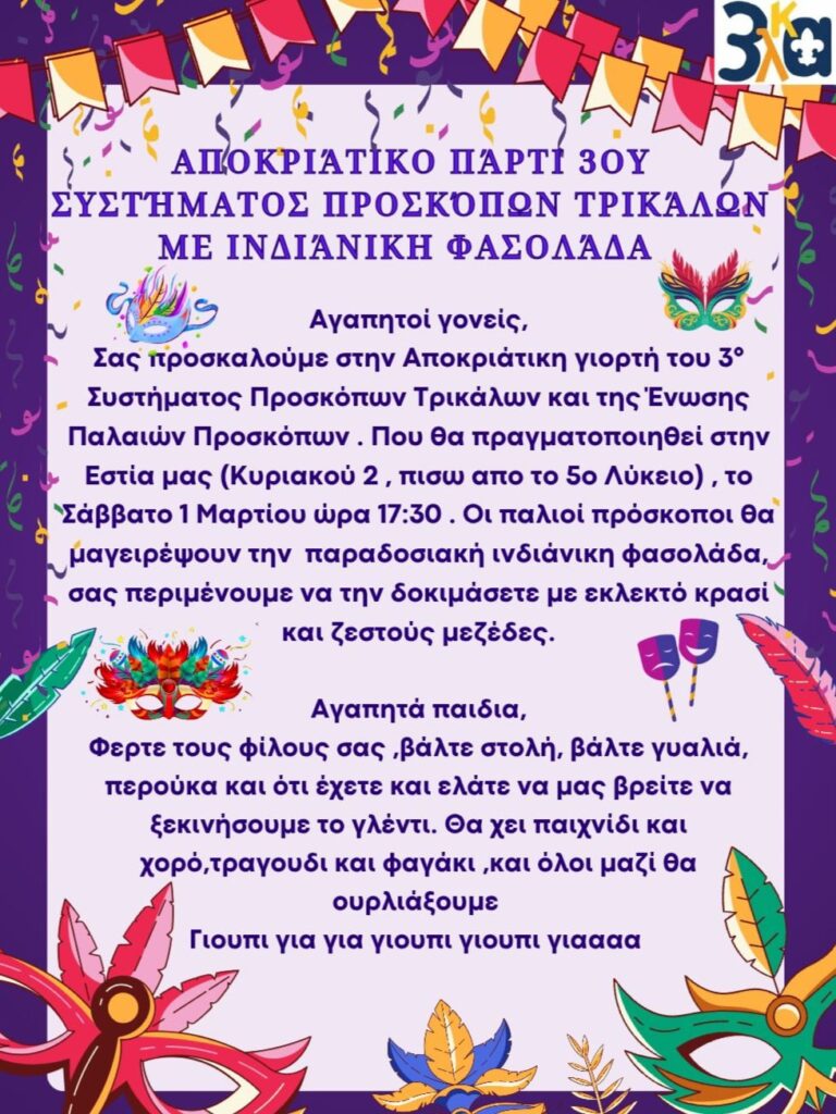 trikaladay.gr / Τοπικά / Αποκριάτικο πάρτι του 3ου Συστήματος Προσκόπων Τρικάλων με ινδιάνικη φασολάδα