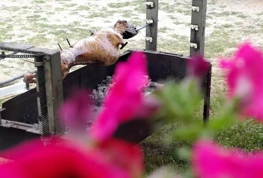 Μετά τη μια ώρα κατεβάζουμε το αρνί λίγο πιο κοντά στη φωτιά και συνεχίζουμε το σούβλισμα με πιο αργό, αλλά πάντα σταθερό ρυθμό μέχρι να αρχίσουν να «σκάνε» τα μπουτάκια του: αυτό σημαίνει ότι το αρνί είναι έτοιμο εσωτερικά, οπότε το κατεβάζουμε κι άλλο –στην τελική του θέση.