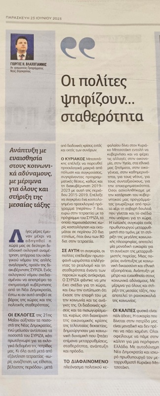 Ελλάδα. Με αυτοδύναμη Νέα Δημοκρατία και ισχυρό Πρωθυπουργό τον Μεταρρυθμιστή