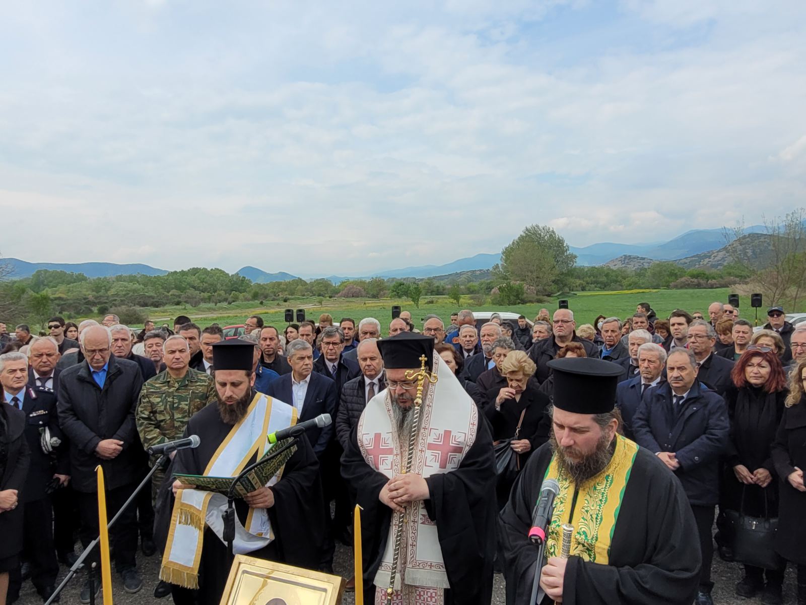 Πλήθος κόσμου με συγκίνηση παραβρέθηκε σήμερα το μεσημέρι της Κυριακής των Βαΐων στο σημείο «μηδέν» όπου τελέστηκε  από τον Μητροπολίτη Λαρίσης και Τυρνάβου Ιερώνυμο επιμνημόσυνη δέηση, ο οποίος εκπροσώπησε τον Αρχιεπίσκοπο Αθηνών και πάσης Ελλάδος κ.κ. Ιερωνύμο και την Ιερά Σύνοδο με τη συμμετοχή των κληρικών της Μητροπόλεως.