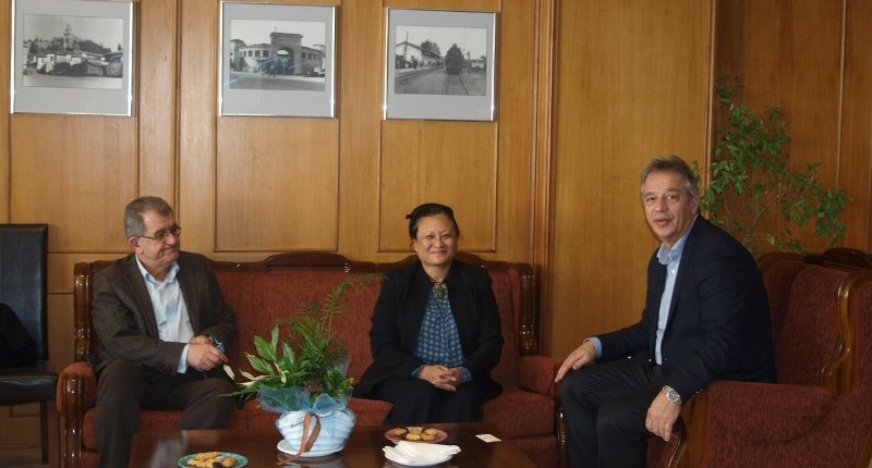 Πρόκειται για την επίσκεψη της προξένου των ΗΠΑ στη Θεσσαλονίκη Rebecca Fong στον αντιπεριφερειάρχη Χρ. Μιχαλάκη και στον δήμαρχο Τρικάλων Δημ. Παπαστεργίου.