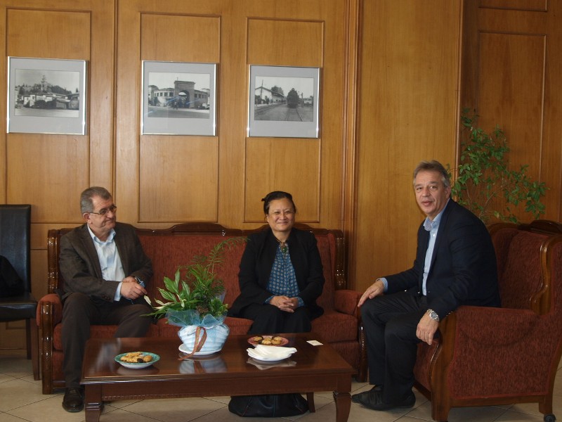 Πρόκειται για την επίσκεψη της προξένου των ΗΠΑ στη Θεσσαλονίκη Rebecca Fong στον αντιπεριφερειάρχη Χρ. Μιχαλάκη και στον δήμαρχο Τρικάλων Δημ. Παπαστεργίου.