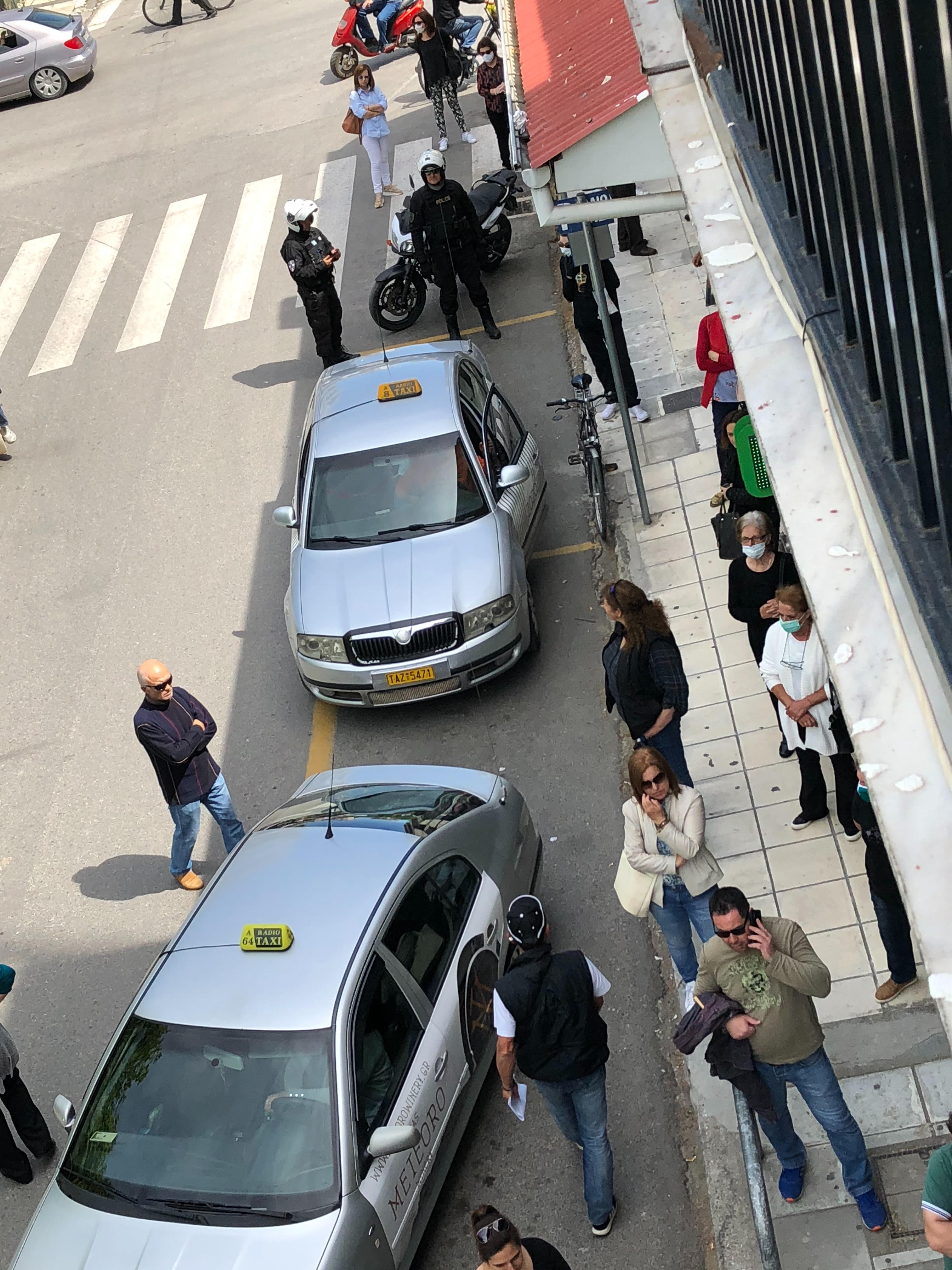 Οπως κατέγραψε σήμερα το μεσημέρι το trikaladay, σε τραπεζικό υποκατάστημα στην πλατεία Εθνικής Αντίστασης οι πολίτες είχαν σχηματίσει τεράστια ουρά χωρίς να τηρούν τις προβλεπόμενες αποστάσεις, με αποστέλεσμα να επέμβουν αστυνομικοί της ομάδας ΔΙΑΣ και να ζητούν από τους πολίτες να …αραιώσουν και να τηρούν απόασταση ο ένας από τον άλλον.