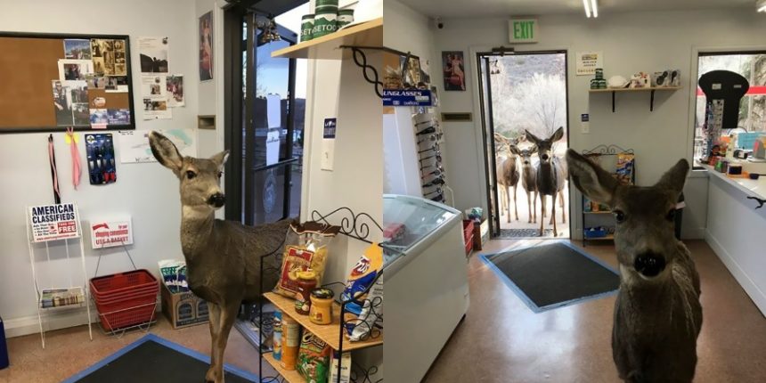 Ωστόσο, η ιδιοκτήτρια δεν επέτρεψε στα ζώα να μπουν στο εσωτερικό του μαγαζιού. Μάλιστα, τα απομάκρυνε από την αστική περιοχή, οδηγώντας τα στο δάσος. Τα συγκεκριμένα ελάφια ζουν στη φύση. Το φυσικό τους περιβάλλον είναι ένα από τα πολλά δάση του Κολοράντο, της πολιτείας με την ωραιότερη και φυσικότερη ομορφιά.