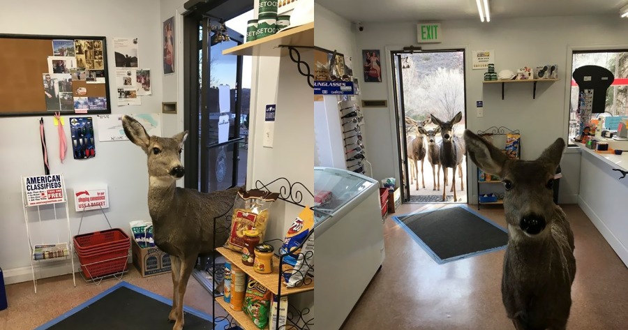 Η ελαφίνα φέρεται να πεινούσε πολύ. Μετά την είσοδό της στο κατάστημα, αποφάσισε να ρίξει μια γρήγορη ματιά στα προϊόντα που διέθετε το εν λόγω κατάστημα. Όμως, η ελαφίνα δεν αρκέστηκε μόνο σε αυτό. Το πανέμορφο ελάφι αποφάσισε να κοιτάξει και τα γυαλιά ηλίου, που πουλούσε το συγκεκριμένο κατάστημα.