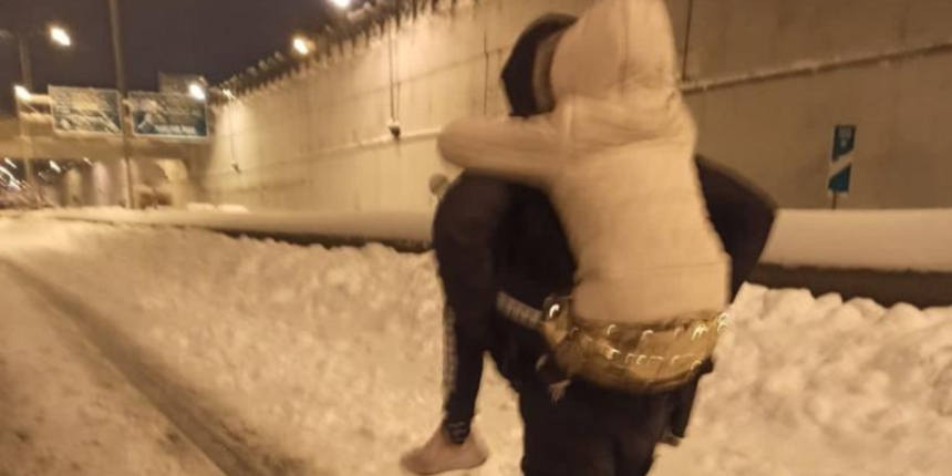 Στην φωτογραφία που δημοσίευσε το enikos.gr, διακρίνεται ο άνδρας της ΟΠΚΕ να μεταφέρει μέσα στη νύχτα σε ασφαλές σημείο το κοριτσάκι, κουβαλώντας το στις πλάτες του. Το κορίτσι είχε εγκλωβιστεί μαζί με τον πατέρα του, στην Περιφερειακή Υμηττού. Οι πληροφορίες του enikos.gr αναφέρουν ότι ο πατέρας της είχε ενημερώσει ότι βρίσκονται για ώρες στο χιόνι και το κοριτσάκι έπρεπε το πρωί να πάει σε νοσοκομείο για να χειρουργηθεί.