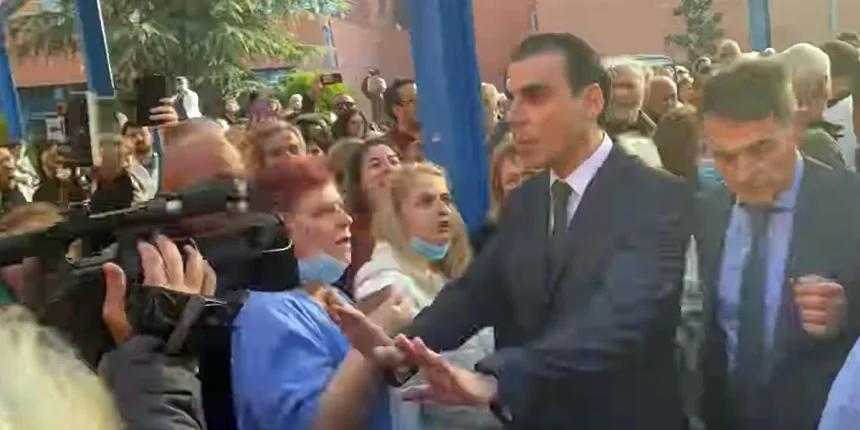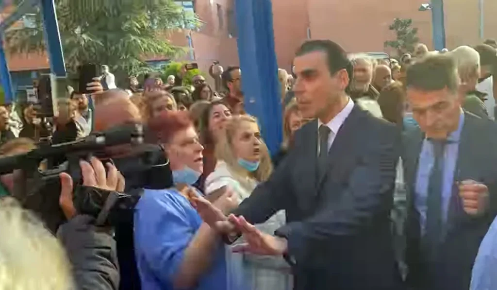 Με πανό, συνθήματα και άγρια γιουχαρίσματα υποδέχθηκαν οι γιατροί, νοσηλευτές και εργαζόμενοι του νοσοκομείου «Αττικόν» τον Μάριο Θεμιστοκλέους.