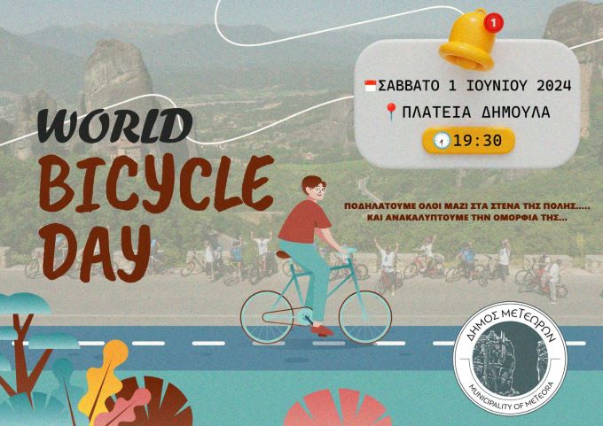 trikaladay.gr / Τοπικά / Αύριο Σάββατο ο Δήμος Μετεώρων γιορτάζει την Παγκόσμια Ημέρα Ποδηλάτου με απογευματινή ποδηλατάδα