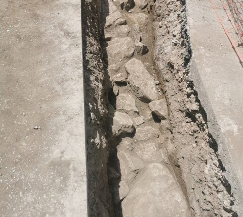 Στη γωνία των οδών 25ης Μαρτίου και Νικοτσάρα, λίγο πριν το Βαρούσι και σε ελάχιστα μέτρα από τον αρχαιολογικό χώρο της αρχαίας Τρίκκης, η εργατική σκαπάνη βρήκε υπολείμματα πιθανώς τείχους, περιόδου που πρέπει να διερευνηθεί.