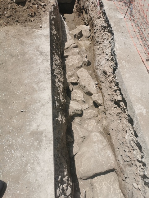 Στη γωνία των οδών 25ης Μαρτίου και Νικοτσάρα, λίγο πριν το Βαρούσι και σε ελάχιστα μέτρα από τον αρχαιολογικό χώρο της αρχαίας Τρίκκης, η εργατική σκαπάνη βρήκε υπολείμματα πιθανώς τείχους, περιόδου που πρέπει να διερευνηθεί.