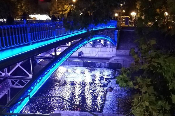 Στα μπλε, το εθνικό μας χρώμα, φωτίστηκε η κεντρική πεζογέφυρα των Τρικάλων για την εθνική επέτειο της 28ης Οκτωβρίου 1940!