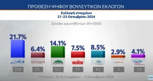Διάβασε περισσότερα »Δημοσκόπηση MRB: Στο 21,7% η ΝΔ, 2ο το ΠΑΣΟΚ με 14,1%, 5ος ΣΥΡΙΖΑ με 6,4% – Ποιον θεωρούν ηγέτη της αντιπολίτευσης οι πολίτες;
