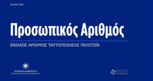 Διάβασε περισσότερα »Ολοκληρώθηκε η διαδικασία αυτόματης απόδοσης Προσωπικού Αριθμού – 9,3 εκατ. πολίτες διαθέτουν ΠΑ