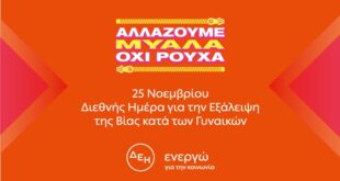 Διάβασε περισσότερα »ΔΕΗ: «Αλλάζουμε μυαλά. Όχι ρούχα» 25 Νοεμβρίου: Διεθνής Ημέρα για την Εξάλειψη της Βίας κατά των Γυναικών