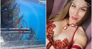 Ένα συγκλονιστικό βίντεο δείχνει τη φρικτή στιγμή που μια αισθητικός έπεσε από ύψος 51 μέτρων και σκοτώθηκε, ενώ έβγαζε μια φωτογραφία ενός άνδρα από μια πλατφόρμα πανοραμικής θέασης στην κορυφή ενός βράχου με θέα στη Μαύρη Θάλασσα. Νωρίτερα αναφέρθηκε ότι η Ρωσίδα αισθητικός Ινέσα Πολένκο, 39 ετών, έπεσε στην παραλία ...