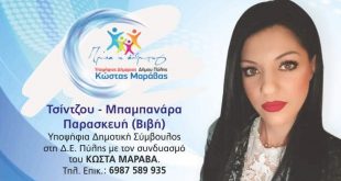 Διάβασε περισσότερα »Με τον συνδυασμό του Κώστα Μαράβα κατεβαίνει δυναμικά στο Δήμο Πύλης η Βιβή Τσίντζου-Μπαμπανάρα
