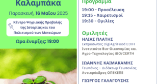 Διάβασε περισσότερα »Την Παρασκευή εκδήλωση του #DigiAgriFood «Ψηφιακός Μετασχηματισμός στη Γεωργία και τη Βιωσιμότητα» στην Καλαμπάκα