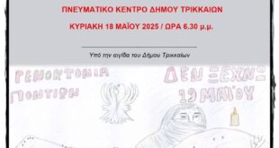 Διάβασε περισσότερα »Εκδήλωση στα Τρίκαλα με θέμα: Η Γενοκτονία των Ποντίων μέσα από τα μάτια των μαθητών