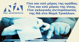 Διάβασε περισσότερα »Η Ν.Δ Τρικάλων ζητά εθελοντές εκλογικούς αντιπροσώπους