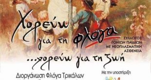 Συνάντηση παραδοσιακών παιδικών – εφηβικών χορευτικών ομάδων διοργανώνει η «Φλόγα» με τη σύμπραξη 7 πολιτιστικών συλλόγων της περιοχής μας το Σάββατο 24 Μαρτίου και ώρα 7:00 στο πνευματικό κέντρο του δήμου Τρικκαίων «Αθανάσιος Τριγώνης». Κύριος στόχος της διοργάνωσης είναι η ευαισθητοποίηση του κοινού στο θέμα των νεοπλασματικών παιδικών ασθενειών. Τα ...