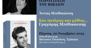 «Και Πατέρας και Μύθος … Γρηγόρης Μπιθικώτσης 1922-2005» Παρουσίαση του νέου βιβλίου της συγγραφέως Άννας Μπιθικώτση την Πέμπτη 20 Νοεμβρίου στις 20:00, στο Μουσείο Τσιτσάνη. Οι εκδόσεις «Όγδοο», η συγγραφέας Άννα Μπιθικώτση, σε συνδιοργάνωση με το Μουσείο Τσιτσάνη και το βιβλιοπωλείο «Τσιοπελάκος» διοργανώνουν την παρουσίαση του βιβλίου: «Και Πατέρας και ...