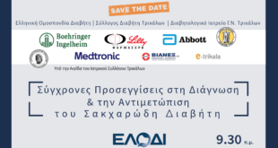 Η Ελληνική Ομοσπονδία Διαβήτη, ο Σύλλογος Διαβήτη Τρικάλων και το Διαβητολογικό Ιατρείο Τρικάλων διοργανώνουν ημερίδα ενημέρωσης και ευαισθητοποίησης πολιτών με θέμα «Σύγχρονες προσεγγίσεις στη διάγνωση και αντιμετώπιση του σακχαρώδη διαβήτη». Η εκδήλωση θα πραγματοποιηθεί το Σάββατο 4 Οκτωβρίου 2025 τις ώρες 9:30 – 14:30 στο κτήριο Παπαστεριάδη, στα Τρίκαλα, με ...