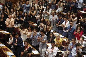 Θερμή υποδοχή μαθητών στον Αλέξη Τσίπρα στη Βουλή των Εφήβων