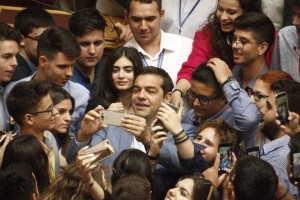 Υποδοχή ροκ σταρ επιφύλασσαν στον Αλέξη Τσίπρα, μαθητές στη Βουλή των Εφήβων. Mε το έφτασε στην Ολομέλεια οι μαθητές πήραν τα κινητά τους τηλέφωνα και έσπευσαν να φωτογραφηθούν μαζί του.