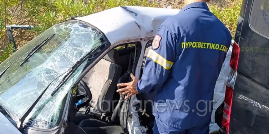 Η σύγκρουση ήταν τόσο σφοδρή με αποτέλεσμα ο ένας νεαρός από τους 4 να βρεθεί νεκρός εκτός του αυτοκινήτου, ενώ τα άλλα τρία άτομα να εγκλωβιστούν σε αυτό.