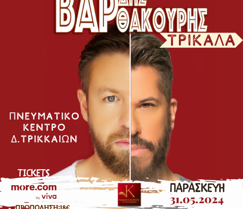 Οι αγαπημένοι ερμηνευτές Χάρης Βαρθακούρης και Γιάννης Βαρδής, συνεχίζουν τις επιτυχημένες τους εμφανίσεις και έρχονται για ένα εκπληκτικό live στο Πνευματικό Κέντρο Τρικάλων, σε μία διοργάνωση της Kostello’s Events, με τραγούδια που αγαπήσαμε και αγαπάμε.