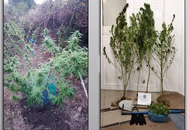 – 4 δενδρύλλια κάνναβης, ύψους από 1,4 έως 2,1 μέτρα, τα οποία εκριζώθηκαν,