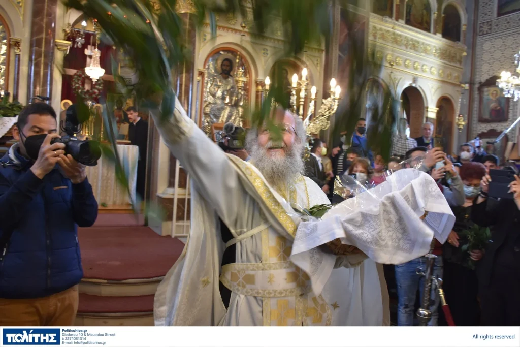 Ο ιερέας σκόρπισε δαφνόφυλλα, σύμβολα της νίκης του Χριστού. Την ίδια ώρα οι πολυέλαιοι της εκκλησίας άρχισαν να “χορεύουν”, σαν να γίνεται σεισμός, και οι πιστοί να χτυπούν τις πάγκες, τα στασίδια, συμμετέχοντας με αυτό τον ιδιαίτερα τρόπο στη χαρμόσυνη είδηση της Ανάστασης του Κυρίου.