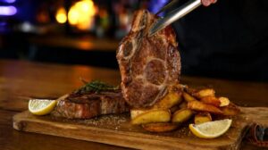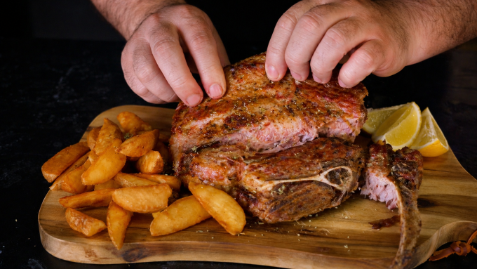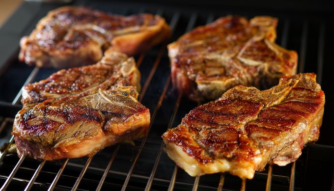 - Αλατίζουμε τις μπριζόλες και από τις 2 πλευρές και τις τοποθετούμε πάνω στη καυτή σχάρα.