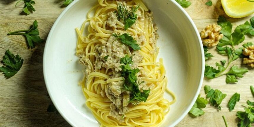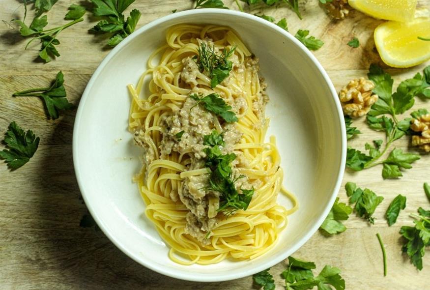 1. Συνταγή για μακαρονάδα με σάλτσα καρύδι-ανθότυρο